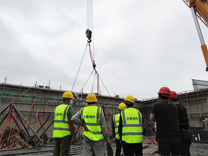 6.为确保.濉溪加油站球形网架安装顺利,应有详细的濉溪施工组织设计。网架安装必须保证结构的稳定性和不产生的附加变形。